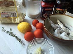 - Add the peppers, lemon zest, 1 tbsp (15 mL) lemon juice, olives, fresh thyme and a bit more salt and pepper. Cook for a further 2 minutes. The idea is to heat the ingredients, cook the shrimp and soften the tomatoes.