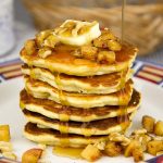 Garnish the pancakes with more butter, your favorite syrup, toasted walnuts and the remaining caramelized apples!