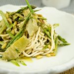 Chicken Noodles with Asparagus, Artichokes and Pine Nuts