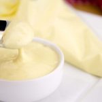 Second Note: Resulting in a total of about 4 1/2 cups (1 L), I readily admit that this recipe is quite large. The primary reason for its size is the small amount of glucomannan, in relation to its strength. The glucomannan is a powerful thickener, but it takes on some bizarre qualities in too high a concentration. If I were to write this recipe as a much smaller recipe, then it would ask for 1/4 tsp of glucomannan, which really dramatically decreases the margin for error. My suggestion is to have a plan for lots of pastry cream for the first try. Be prepared to make a super huge trifle or 2 Boston Cream Pies, with hungry mouths nearby. Once you see how it works, then tweak the recipe the second time and cut it into thirds, resulting in only about 1 1/2 cups (360 mL), or about six 1/4-cup (60 mL) servings.