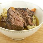 The method is essentially searing a piece of meat, throwing it into a crock-pot with some veggies, herbs and red wine. Leave it alone for 8 hours. Return and add cauliflower, pushing it down into the jus. Let it sit for 20 more minutes. Serve!