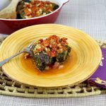On a final note, these are actually quite easy to throw together. The most challenging part is pre-cooking the leaves, but this only takes about 45 seconds. The rest is just throwing some ingredients into raw meat, wrapping leaves around the balls and then topping them with a quick raw tomato sauce. The whole thing cooks and melds together in the oven.