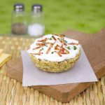 I chose to go "savory" this time, starting with a zucchini base. I then incorporated bacon, parmesan, fresh herbs and a simple topping of cream cheese!