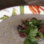 Dish into bowls and garnish with bacon bits, mushrooms, fresh herbs and swirls of extra virgin olive oil and/or bacon fat.