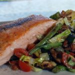Warm Salmon, Tomato, Bacon, Mustard and Romaine Salad